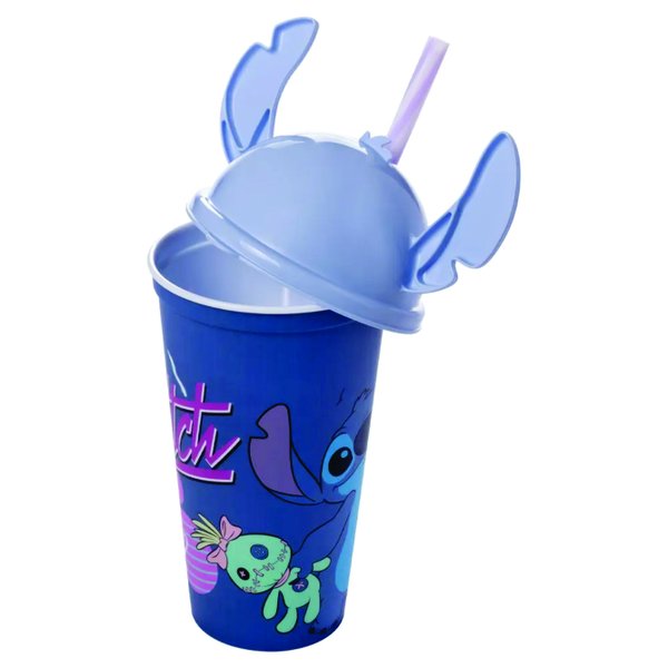Copo com Tampa e Canudo Stitch Azul 500ml – Plasútil